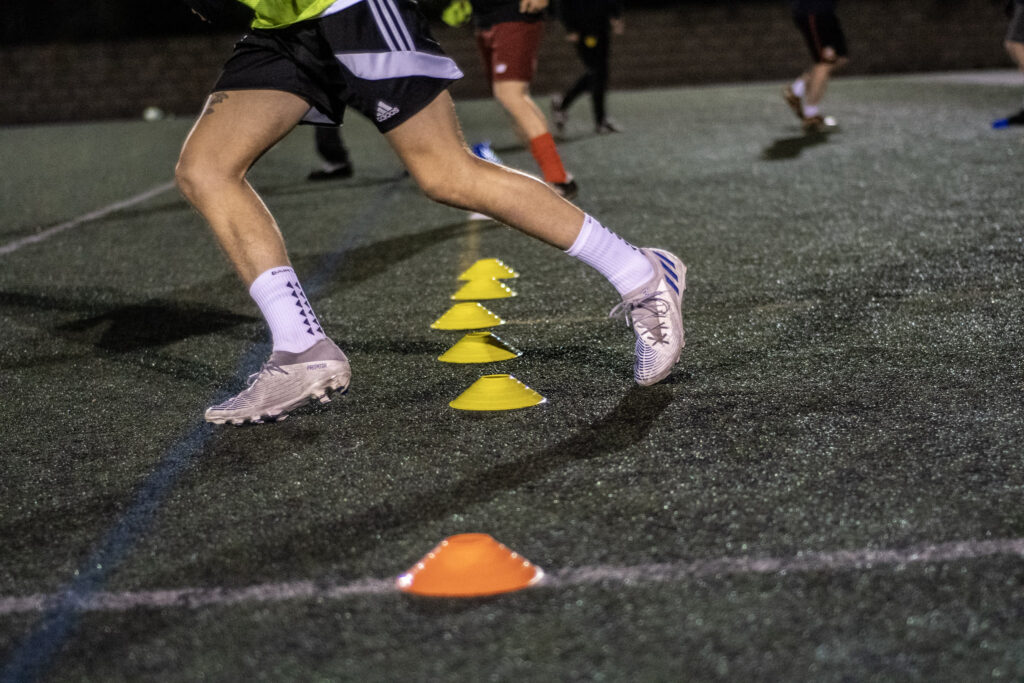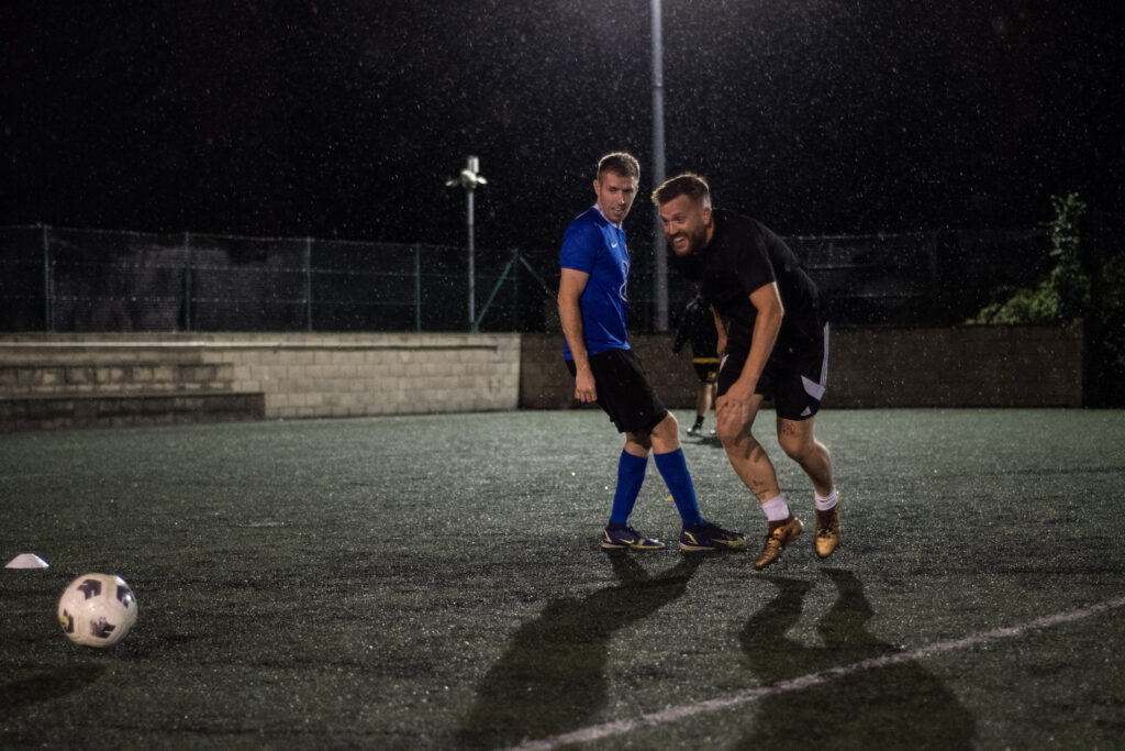 Structured football sessions including various fitness and skill drills, mindfulness discussions, and of course a friendly game.